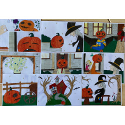 10 pages d'illustrations originales et 10 pages de texte d'après le conte "La citrouille de la sorcière Kaleshfeugras"