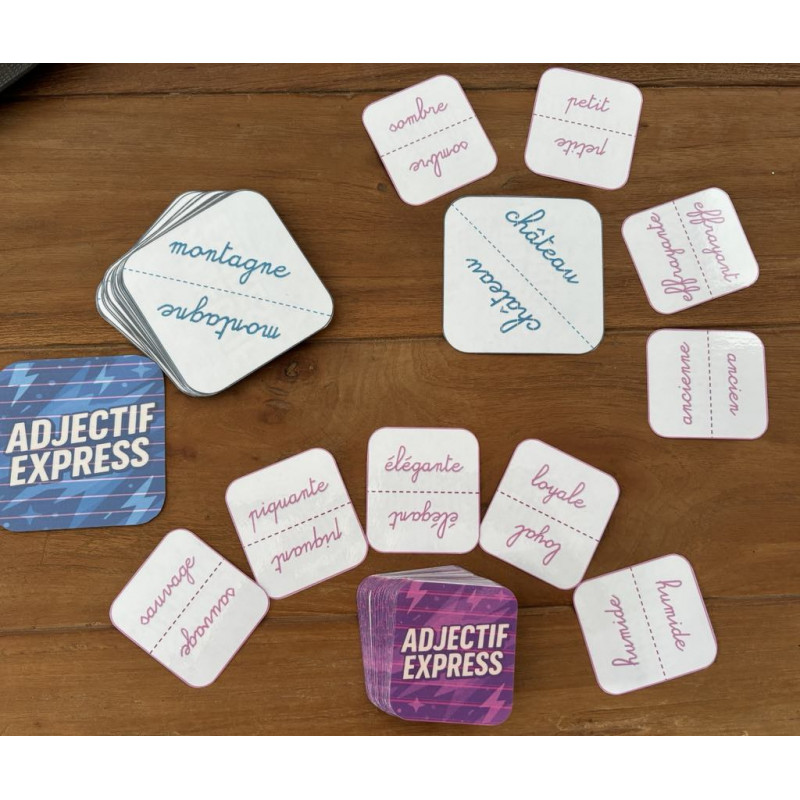 Un jeu amusant et éducatif où les enfants développent leur vocabulaire tout en s’amusant ! À chaque tour, un nom est tiré au hasard : les joueurs doivent alors poser un adjectif de leur main qui s’y associe le mieux. Créativité, rapidité et sens du langage seront vos meilleurs alliés pour vous débarrasser de toutes vos cartes et remporter la partie !