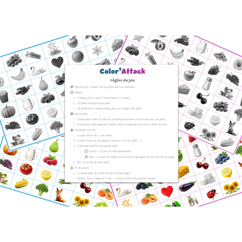 Dans ce jeu en duel, tu vas devoir récupérer tes jetons avant ton adversaire en rendants aux éléments de ton plateau leur couleur naturelle.