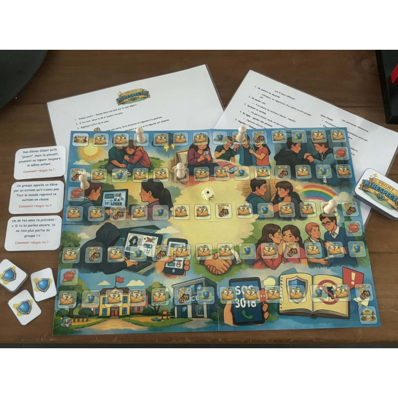 Projet Respect est un jeu de l’oie pédagogique conçu pour sensibiliser les enfants de 10 à 15 ans au thème du harcèlement.