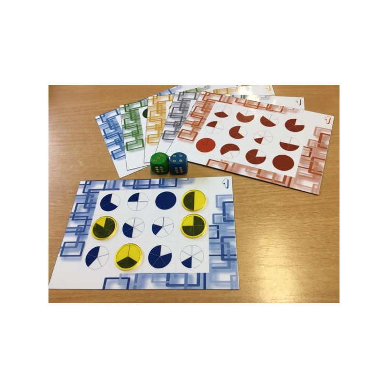 Chaque joueur dispose dune planche de jeu et de jetons. A chaque tour, un enfant lance les 2 dés. Le plus petit nombre désigné par les dés représente le numérateur et le plus grand le dénominateur. Lenfant qui dispose de la représentation de la fraction sur sa planche de jeu (ou une fraction équivalente