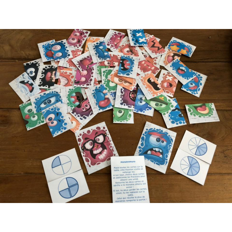Un jeu dans lequel il faut combiner deux fractions de même dénominateur pour reconstituer les monstres qui sortent du mur !