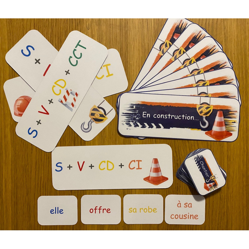 Dans ce jeu, tu devras construire des phrases grammaticalement correctes au départ du plan de construction (structure de phrase) et des éléments des chantier (groupes de mots) dont tu disposes. Pour t'aider, chaque fonction est représentée par une couleur.